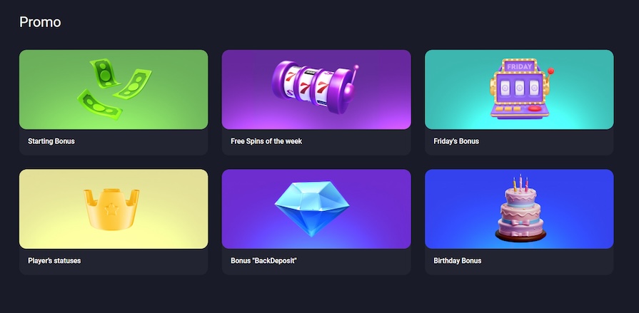 Чтобы ознакомиться со всеми имеющимися бонусами, требуется кликнуть на раздел “Промо” в главном меню. В открывшемся окне будут виджеты с информацией.