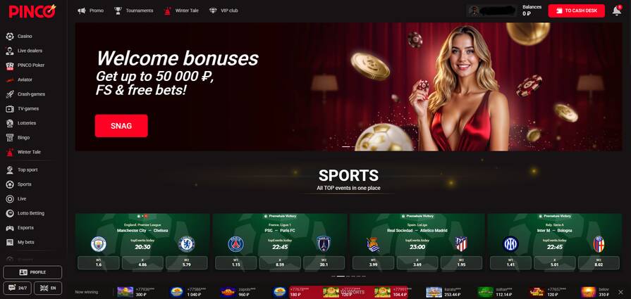 Pinco — сайт с приятным дизайном, совмещающий в себе функции казино и букмекерской конторы. Его пользователи могут ощутить чувство азарта, делая спины слотах от официальных провайдеров и совершая ставки на различные спортивные события.