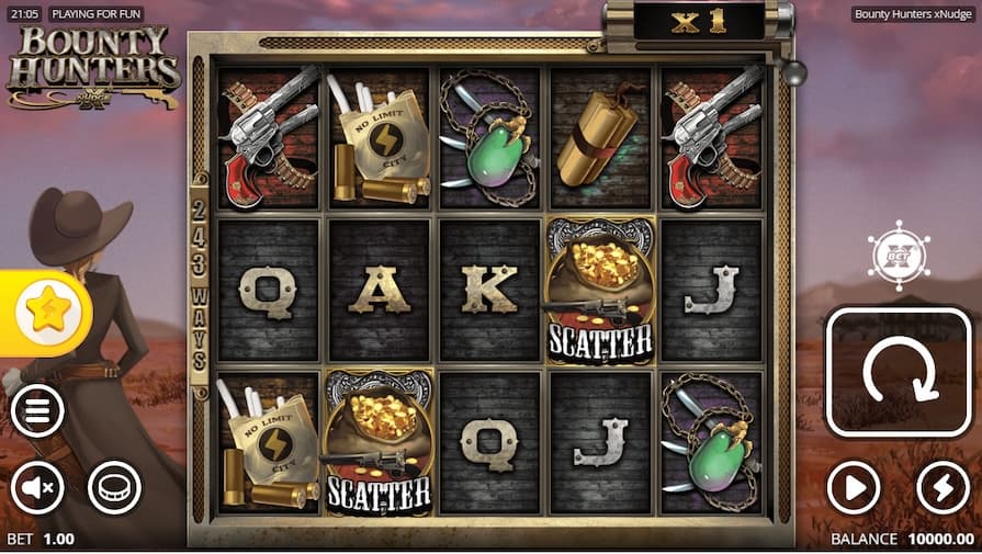 Максимальный выигрыш в Bounty Hunters составляет 52310x. Игровое поле выполнено в формате 5*3, а для определения выигрышной комбинации реализовано 243 линии. Фактически, гемблер забирает выигрыш, если хотя бы на трех соседних барабанах, начиная с левого, выпали одинаковые изображения. При этом их расположение на барабанах не имеет значения.