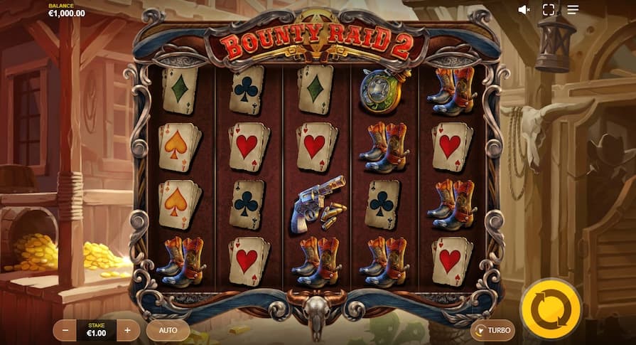 Внешний вид автомата Bounty Raid 2 стилизован под сеттинг Дикого Запада. На заднем фоне изображена улица маленького местного городка с деревянными постройками. Также гемблеры могут рассмотреть небольшие горы золота, разбросанные на крыльце одного из зданий.