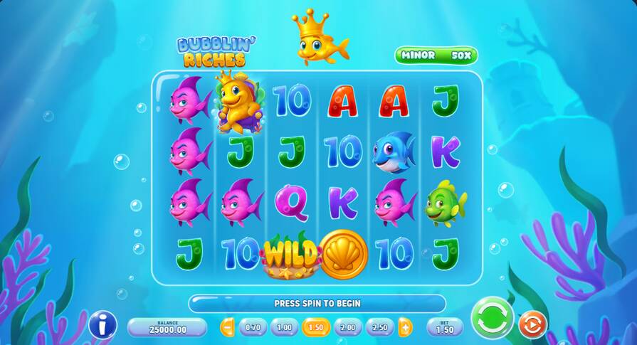 Существует большое количество слотов, посвященных морской тематике. И провайдер Play’n Go тоже решил пофантазировать на эту тему при создании Bubblin’ Riches. Он добавил в автомат возможность забрать джекот и несколько функциональных символов. За счет них гемблер может попытаться получить довольно крупный максвин.