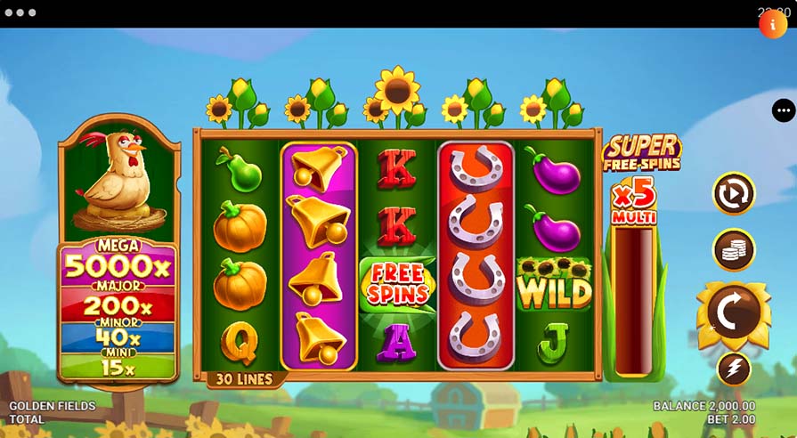 При создании слота Golden Fields провайдер Just for the Win постарался реализовать в нем как можно больше различных функций. Разработчики воспроизвели сразу три вида бонусной игры и ряд специальных символов. Все это делает игровой процесс очень разнообразным и позволяет рассчитывать на крупный выигрыш.